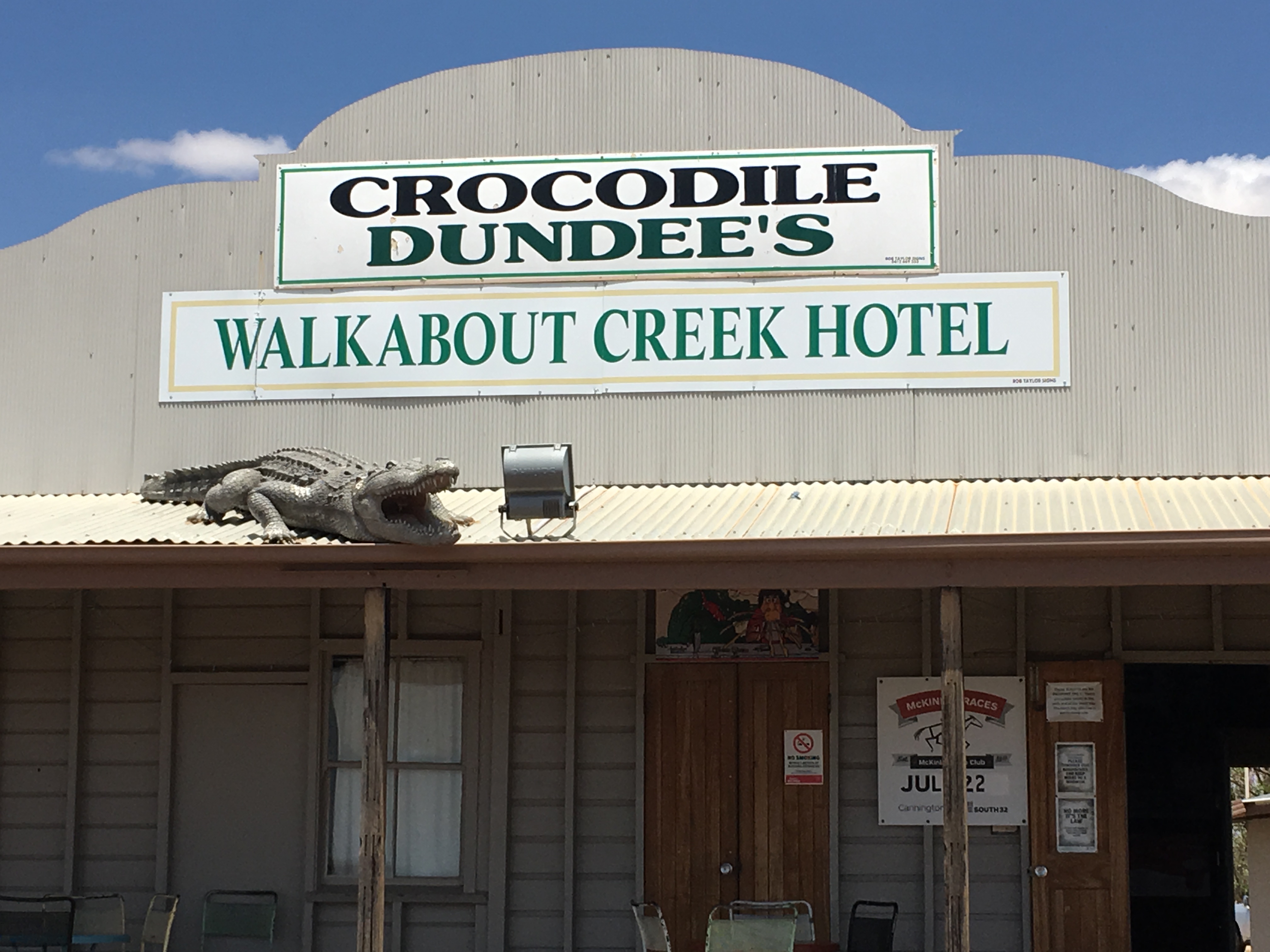 We packed up in the morning and left Cloncurry and I drove again to the Walkabout Creek Hotel (south west on the Landsborough Highway). This hotel was used in the Crocodile Dundee movie so we had a drink in this famous pub.