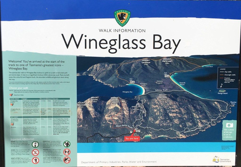The next day we took a drive to Coles Bay which was about half an hour south from Bicheno. From Coles Bay we then did a 2.5 km return hike through the Freycinet National Park to the Wineglass Bay Lookout.