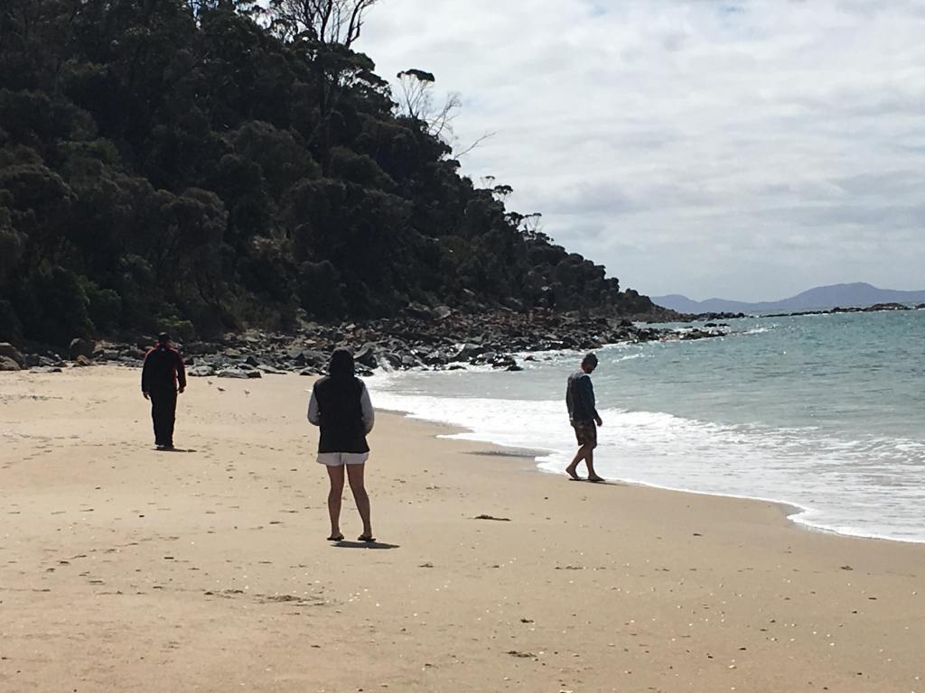 We continued driving up the east coast. We wanted to stop at Swimcart Beach but it was completely full, very popular and busy spot. But we managed to find another free camp at Cosy Corner (South) Campground further up which was also situated on another beautiful beach – a picturesque location at the Bay of Fires. It was a lovely afternoon for a walk on the beach. Mitchell went for a swim, Andrew put his feet in but it was too cold for me to do either LOL LOL. Yes, even though the sun was shining and the weather was warm, water still cold!!
