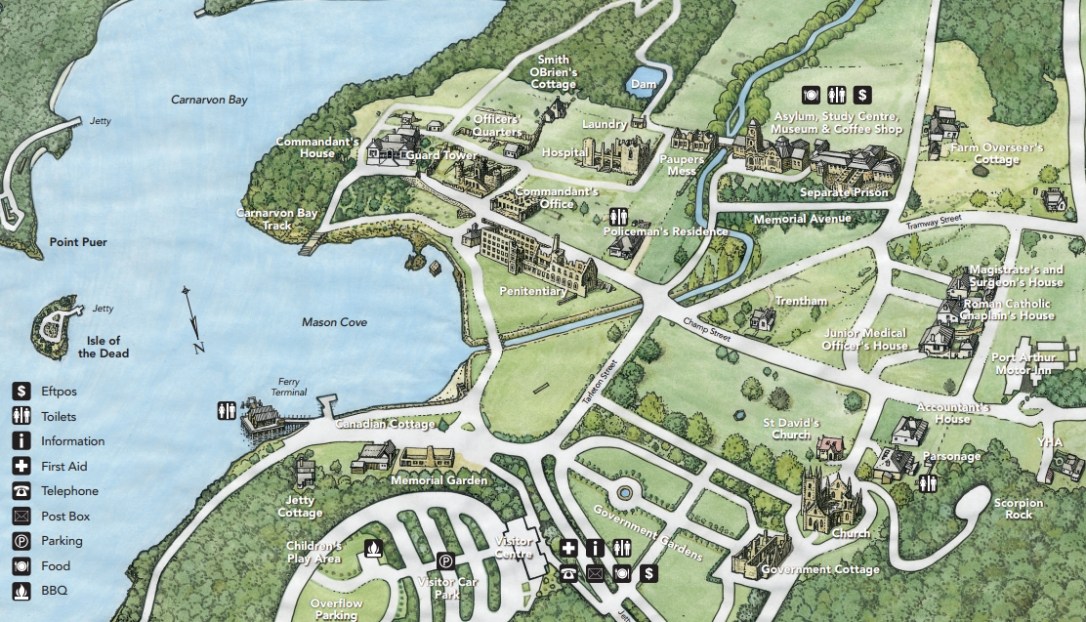 A Memorial Garden has also been built as a place of remembrance and reflection of those people that died at the hands of Martin Bryant on 28 April 1996. The cafe is no longer operational, just the shell of it stands.
