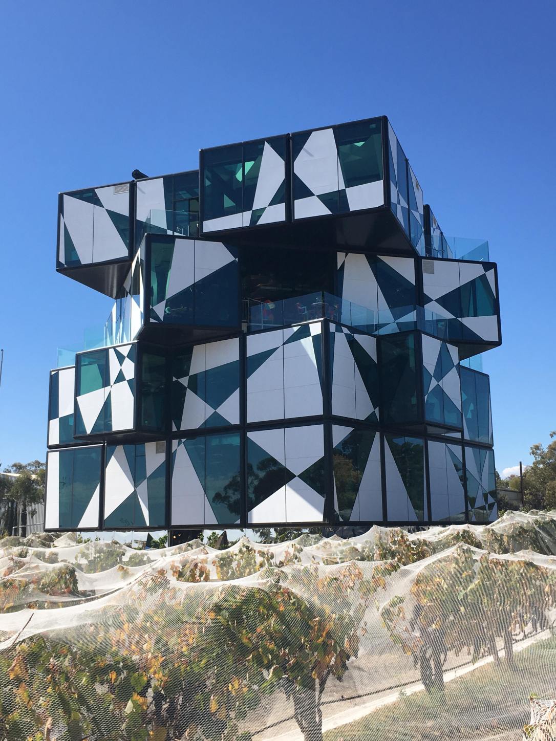 We made a stop at d’Arenberg Winery where there was this very unusual cube built in the vineyards. The idea to build the d‘Arenberg Cube came to Chester Osborn in 2003.