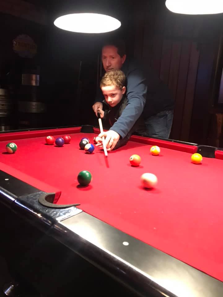 81228531_10156723831932522_8824393025577811968_n – Copy – Copy Mitchell learning to play pool with the help of Andrew